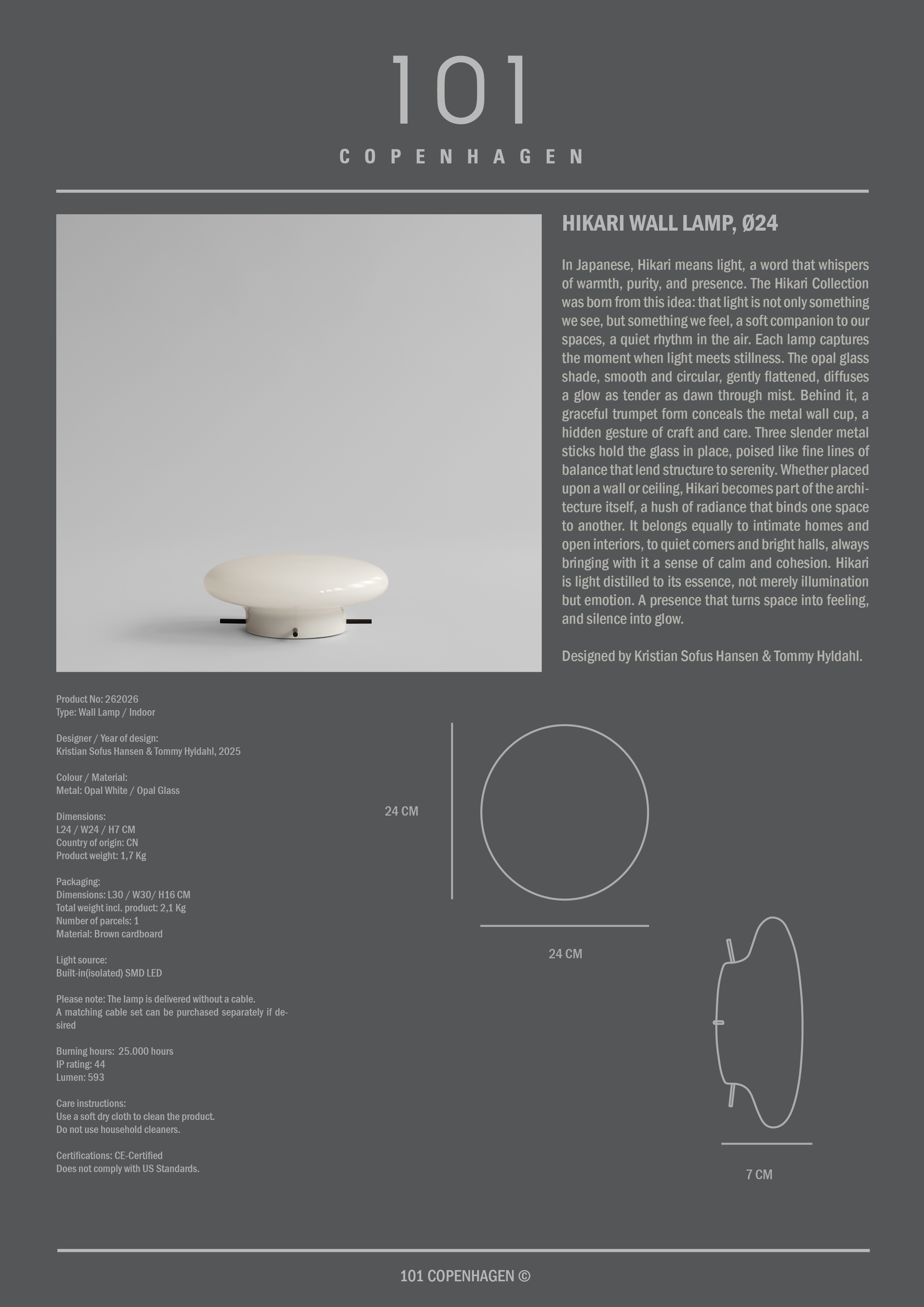 101 Copenhagen Hikari Wall Lamp Ø24 Opal White £ 215 Live price match Ready for delivery in 30–40 days Add to basketExplore more product information No import fees - all duties pre-paid! (UK only) Free shipping on orders above 150 € Excluding large furniture and other selected products Authorised distributor