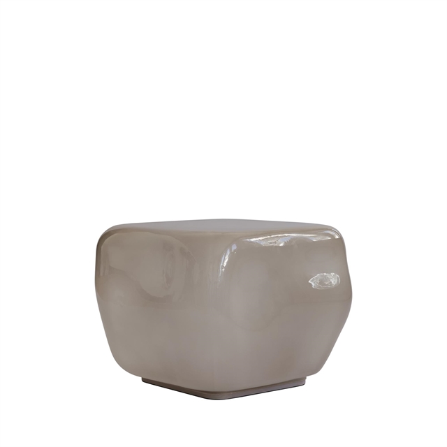 Ishi Coffee Table means stone in Japanese and is a sculptural table inspired by natural rock formations. The cubic, organic shape with soft deformations combines minimalism with tranquility. The table is mouth-blown glass, shaped in a special mold at 1500°C, tempered and hand-finished with a spray-painted interior and wooden base with metal reinforcement. Small variations and air bubbles make each table unique. Available in two sizes and colors Smoked Forest, a warm deep brown, and Smoked Desert, a soft gray. Ishi functions as a side table or centerpiece and adds stylish craftsmanship to both private and public spaces. Designed by Kristian Sofus Hansen and Tommy Hyldahl.