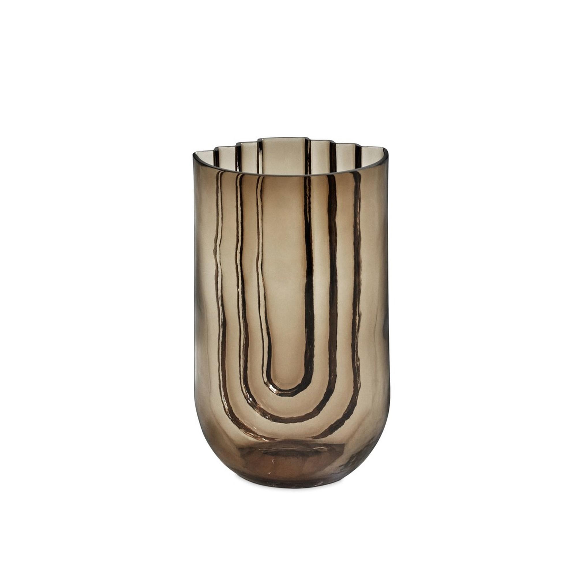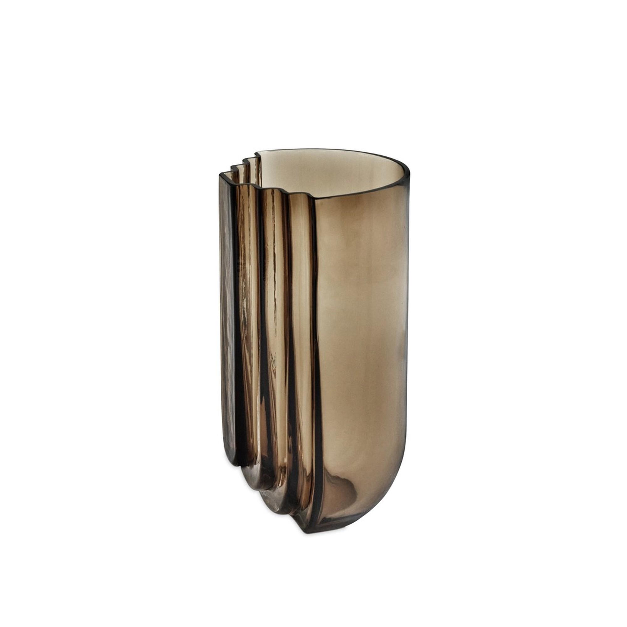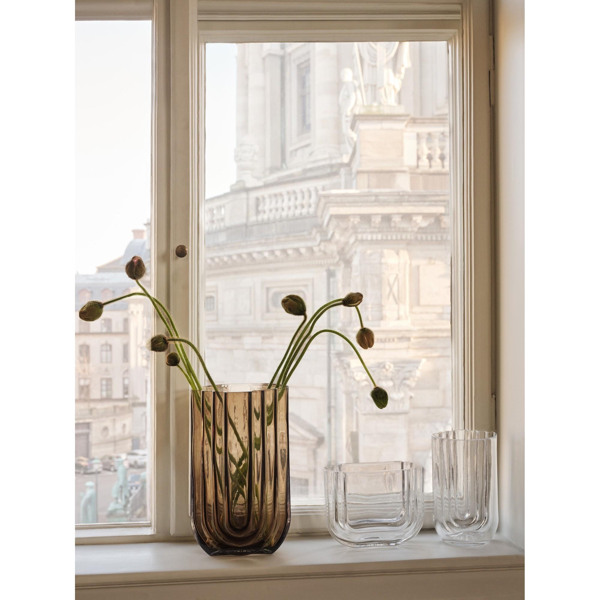 VIMA is an elegant glass series with an architectural and monolithic expression designed by Marion Fortat. Inspired by arches and passages, each vase is designed with clean geometric lines and stepped shapes, where subtle variations in the glass thickness allow the light to create depth, reflections and soft shadows.