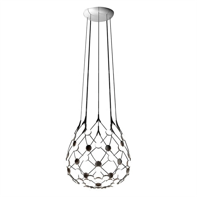 Concept: Luceplan Mesh Pendant has a beautiful transparent structure composed of a network of flexible cables, with LED light sources at each crossing of the cables. A very complex and elegant design. The lamp comes as standard with an On/Off function and the option of PUSH-dim if you have one installed. In this way, it is possible to control the light intensity depending on the atmosphere you want to create with the lamp. Mesh provides fantastic light and a unique lighting experience for the room where the lamp hangs. Lucepan Mesh comes as a pendant version in two sizes, respectively Ø80 cm and Ø55 cm, and in addition the lamp comes in a Ceiling light version in Ø72 cm.