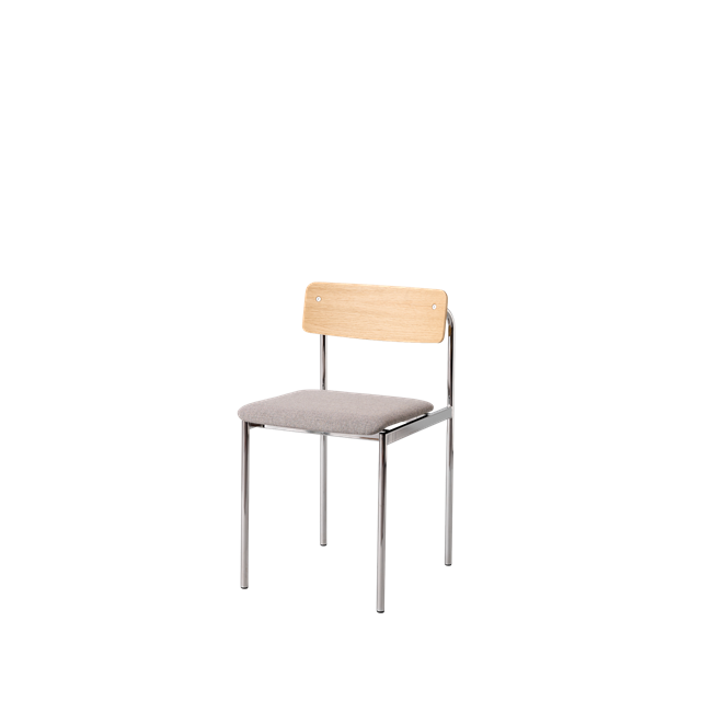 Moebe Offset Dining Chair Upholstered Chrome/Lacquered Oak/Re-Wool 128