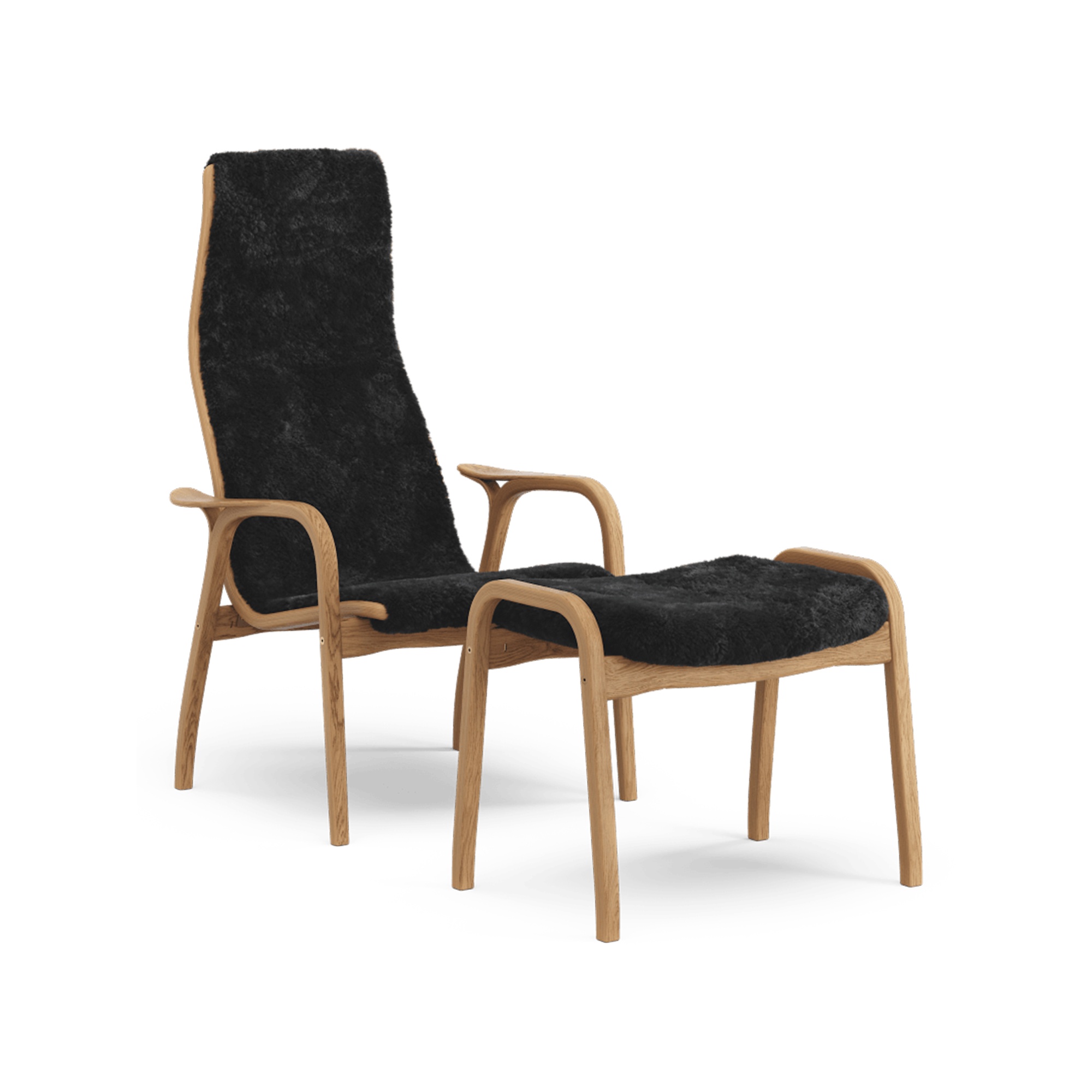 Swedese Lamino Armchair With Footstool High Oiled Oak/ Black/Sheepskin