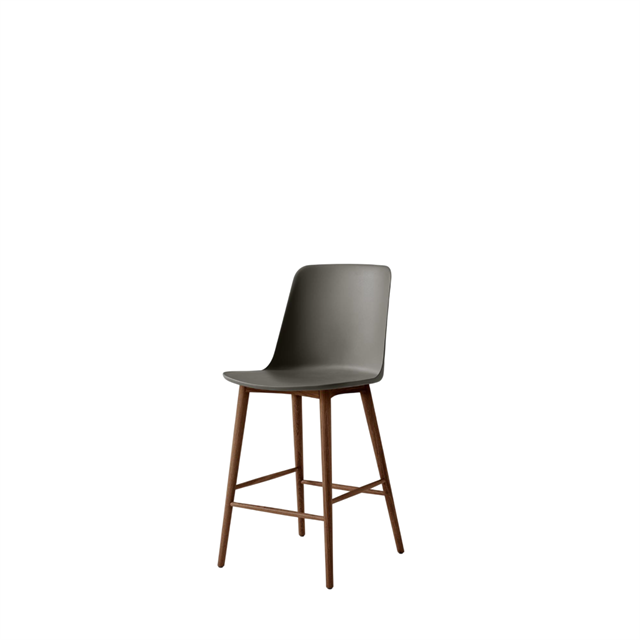 &Tradition Rely HW128 Bar Stool High Back Lacquered Walnut/Stone Grey